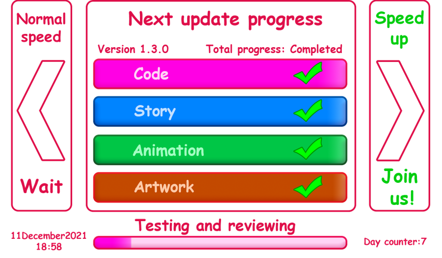 Finally, #Magical_Gene v1.3.0 is ready and now being tested and revised. The game will be released on December 14th for the dear Patrons. It will be released to the public in three days, on December 17th.