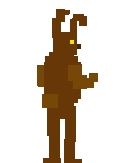 Ever notice how in almost every appearance of spingbonnie up until fnaf world he had yellow or white glowing eyes? I actually think the idea of a springbonnie model having this would be cool for one of my games. The original intention was for SB to haveit