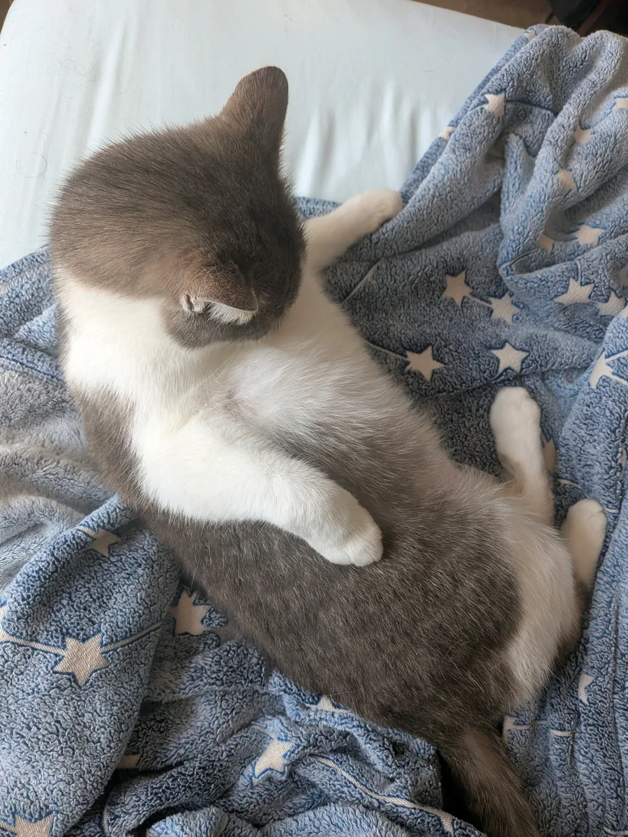 Kirby and Orangey sleeping next to me from last night. I love the way he curled up lol.