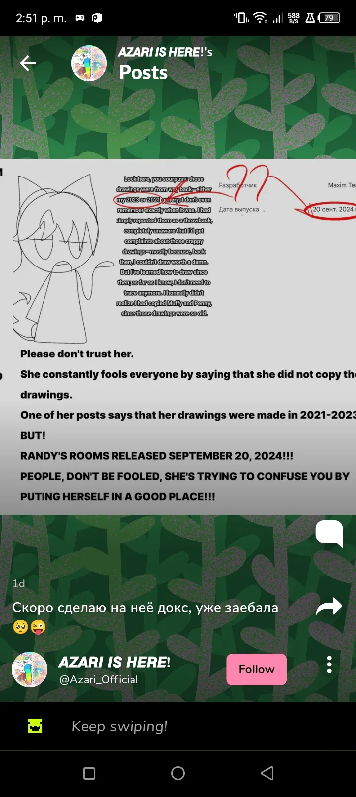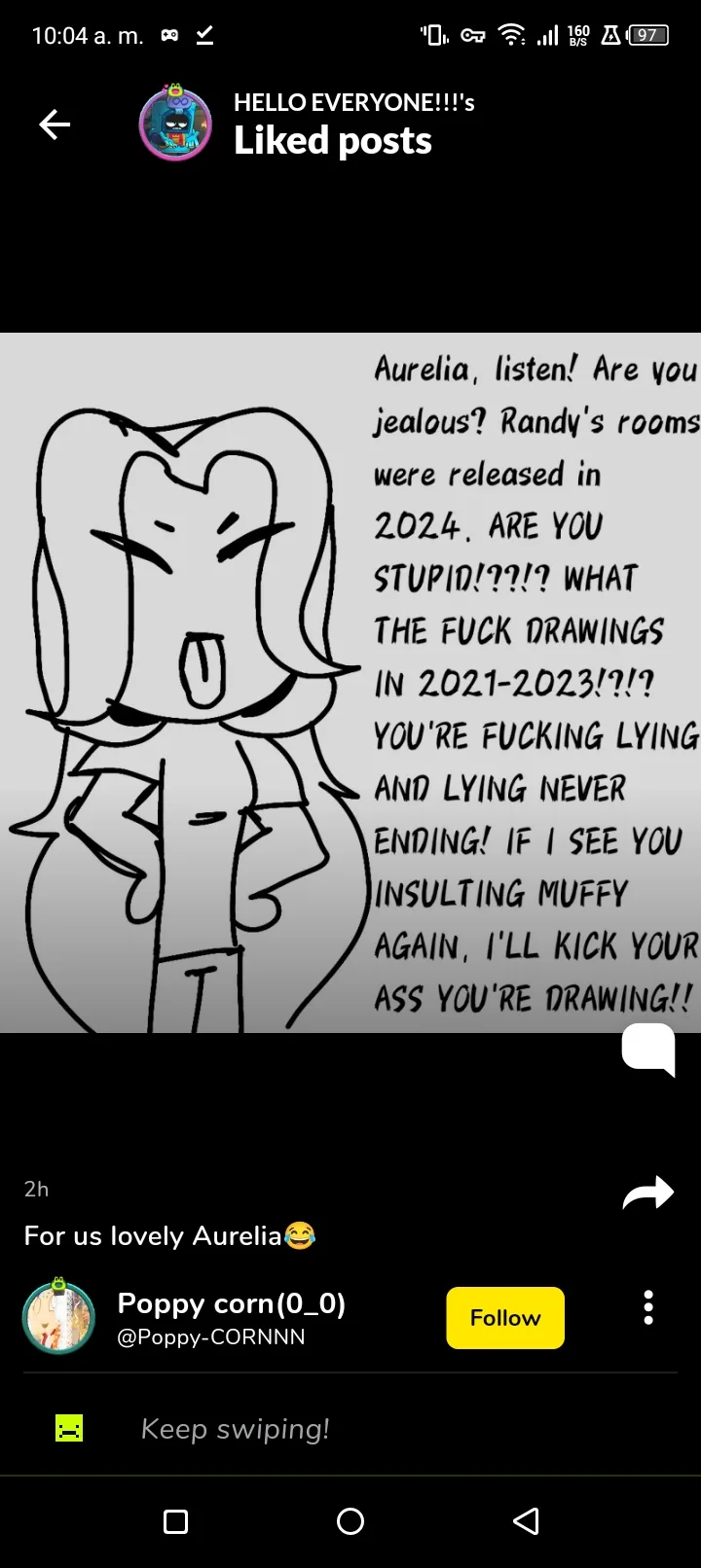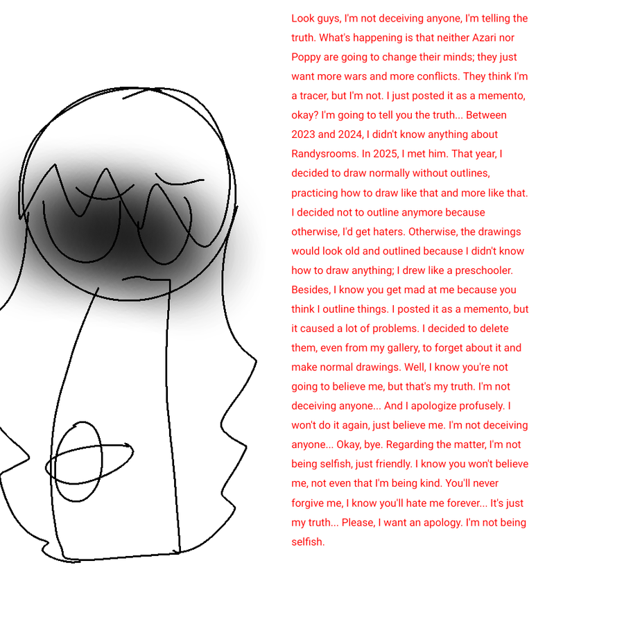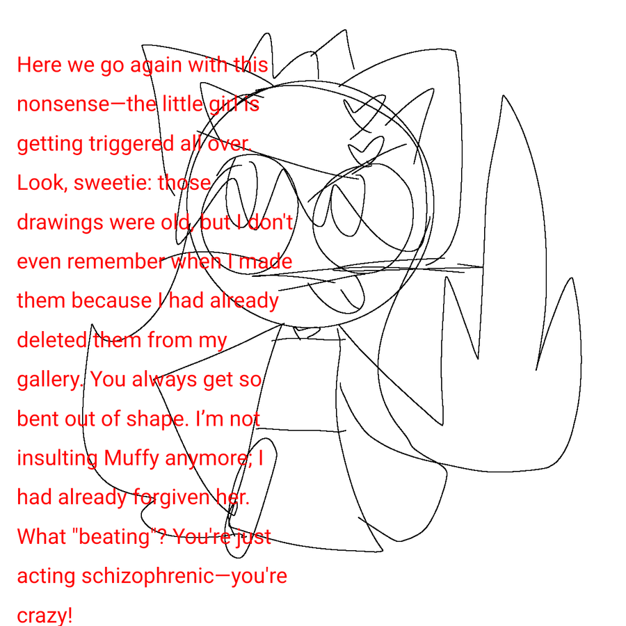 Here we go with this bullshit again. The girl’s getting bent out of shape again; she thinks I’m lying again. Does she seriously just want to complain? LOOK, GIRL—HOW WAS I SUPPOSED TO KNOW THE DATES OF THOSE OLD DRAWINGS?! Im sorry poppy :<