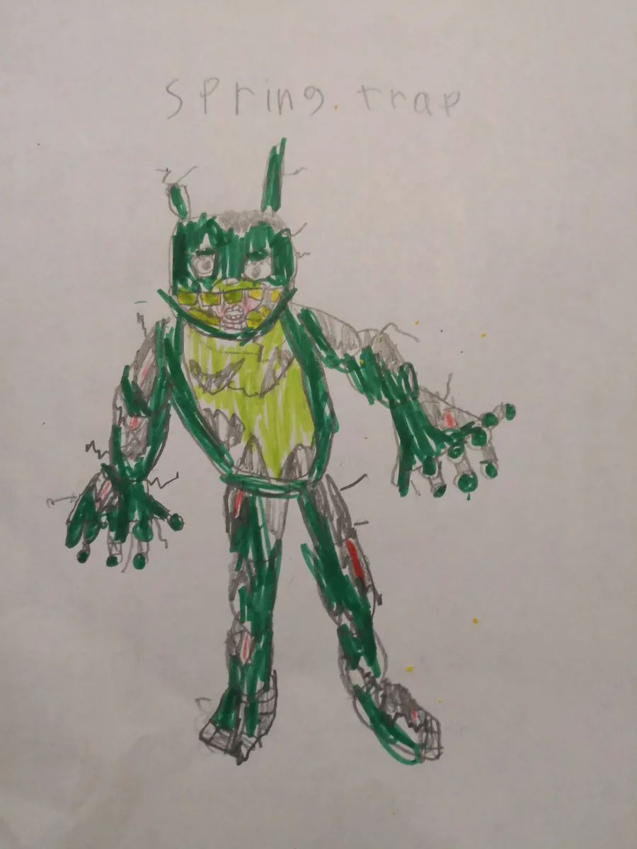 So I redesigned spring-trap hope you like it I didn't have any red that were red they were mainly Orange and the white stuff is a little bit of bone the white stuff is his bones he just has a little bit of flesh left