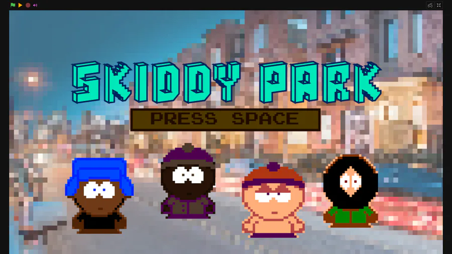 Here is the title screen. Obvious enough, and the game, is based on the cancelled South Park Game Boy game, only with original characters by small rapper Skiddy!