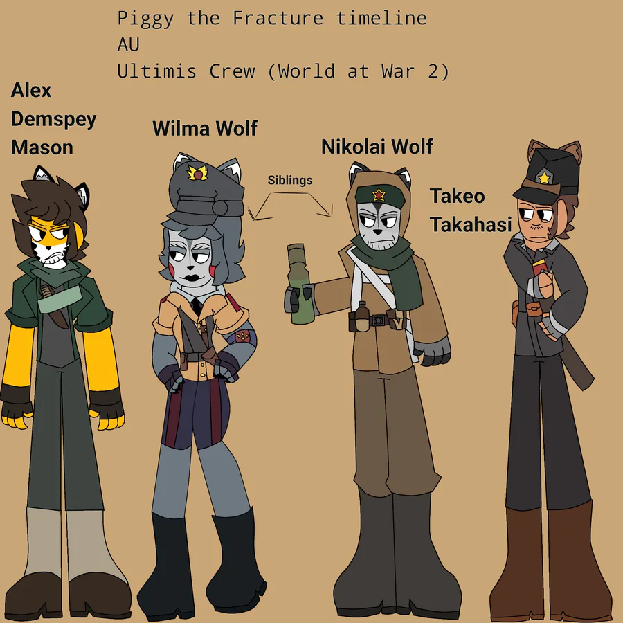 So continuing my AU stuff, i decided to fix my Ultimis crew for my Piggy AU and each members are represented by the other 2 images