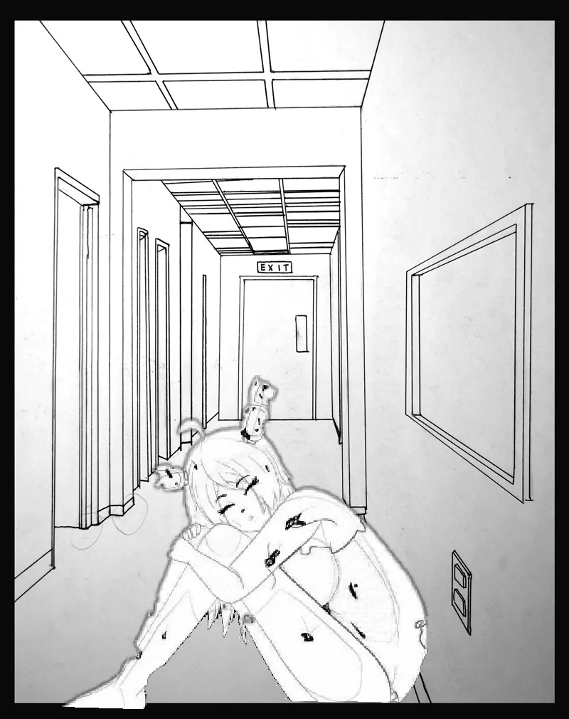 Пробная перерисовка цветного арта в чёрно-белый (манга) ,указывая тени и добавляя затемнения на лице и