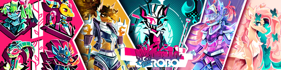 I'm Nebularobo (He/him/they/them), brazilian digital artist! I love to draw robots, anthropomorphic designs, colorful cybernetic stuff, and character design in general, and short animations, and some comics work!