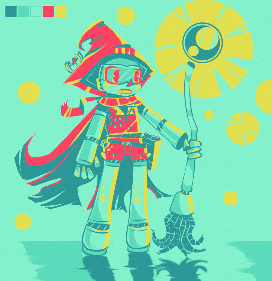Robo Witch! Design I drew for fun in a limited color palette some time ago