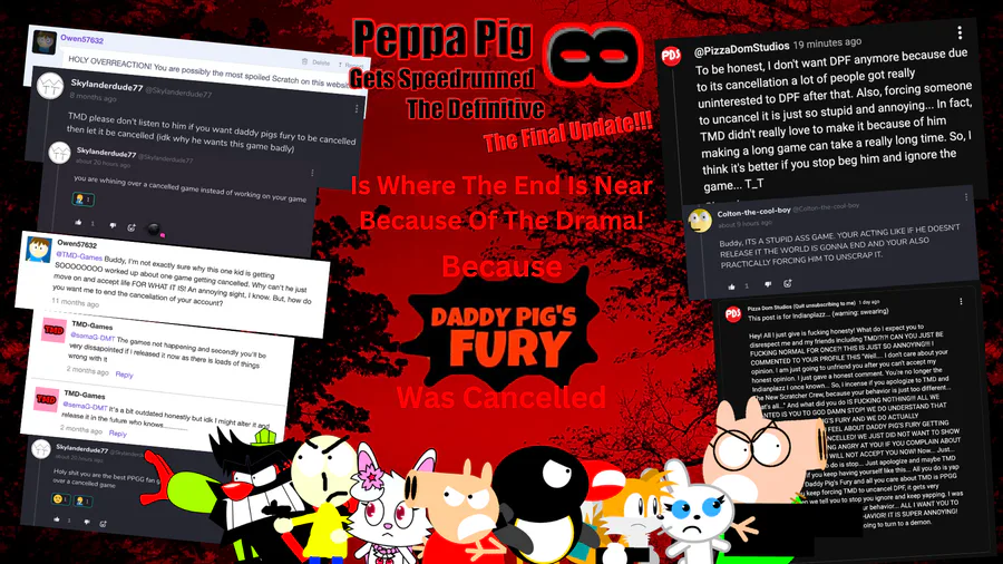 ppgsinfinite is coming to a bad end, ppgsinfinite will have the final update, because there's a lot of bad things that is ruining the ppgs series, daddy pig's fury being cancelled, scratch team banning and deleting my scratch accounts, and many features for the ppgs games becoming unused, tmd is not any better after all