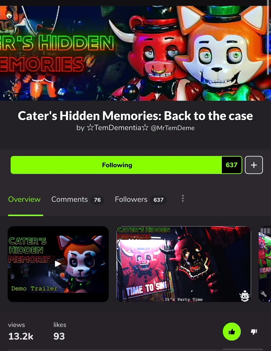 This is not a call out post but I wanted to say that I think this is so dumb and unfair that an original project is being shafted for a FNAF 1 remake. Now Souless Look is good don’t get me wrong. But it’s kinda sad looking Cater’s being left in the dust.
