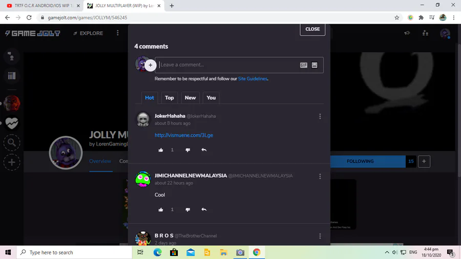 IF YOU SEE A ACCOUNT NAME USER ON GAMEJOLT NAME 'IMJOKERHAHAHA' DO NOT PRESS HIS LINK ITS DANGEROUS SOMETHING WENT MY PC WRONG IF YOU SEE THIS COMMENT REPORT OR DELETE IT