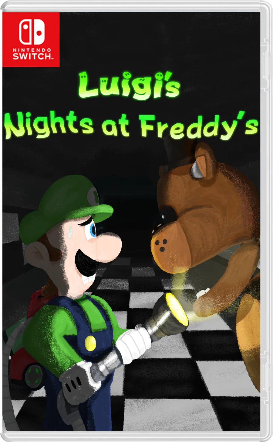 Luigi gets dragged into the scares of FNaF.