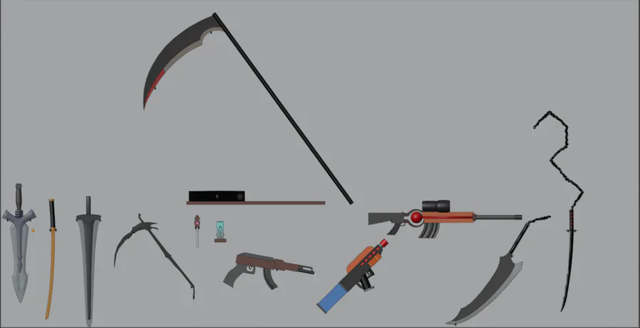 Some things I've made put up on a wall. I mainly model for Roblox at the moment, so some look a little scuffed lol.