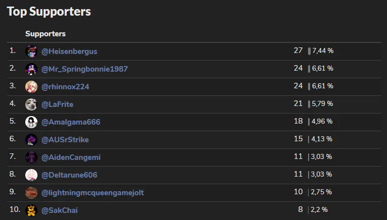FR: Pour ceux qui seraient curieux, voici mes top supporters du mois. Donc ne traînez pas si vous voulez votre modèle en 3D ! ;)