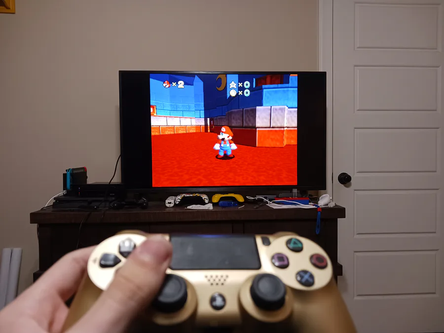 I get to play the silly Mario game with a Playstation controller