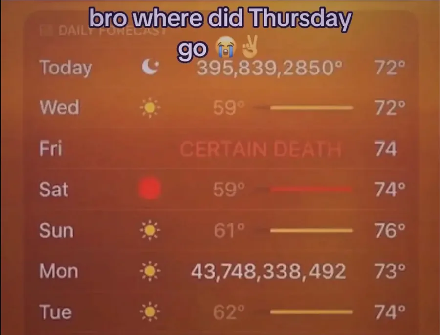 One question what Happen to Thursday? And we are cooked