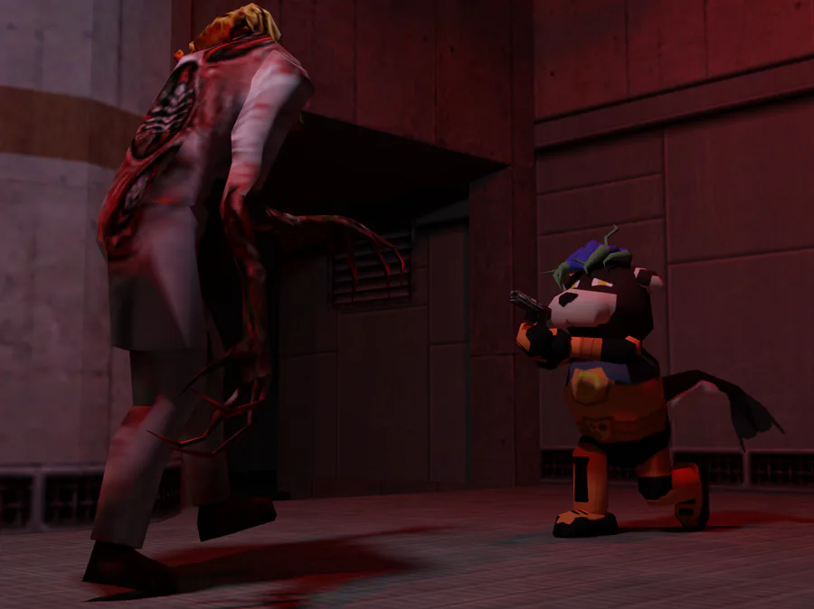 I just wanted to share this model of my oc, but in an N64 (or just Low-Poly) style, with different textures to boot, and i got mainly the crowbar and the portal gun from Models Resource, but the zombie and the map came from Sven Co-Op.