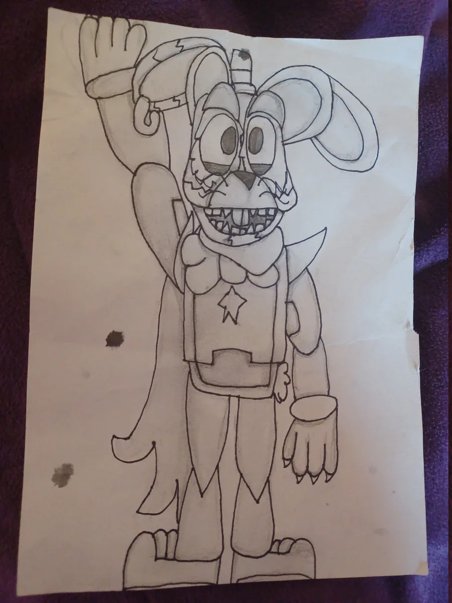 This is an older, forgotten drawing of mine. It's Whiskers in the style of a Glamrock animatronic! I drew another version with color, but I don't have it on me, perhaps when I get it back, I'll post it.