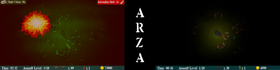 "ARZA - Adrenaline Rush Zombie Assault" is our first released game.