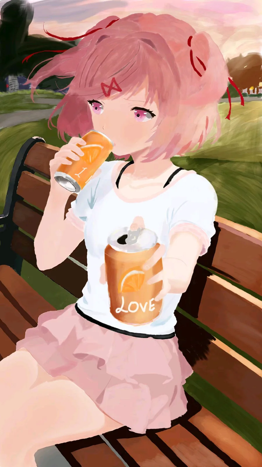 Sharing a soft drink with you at dusk