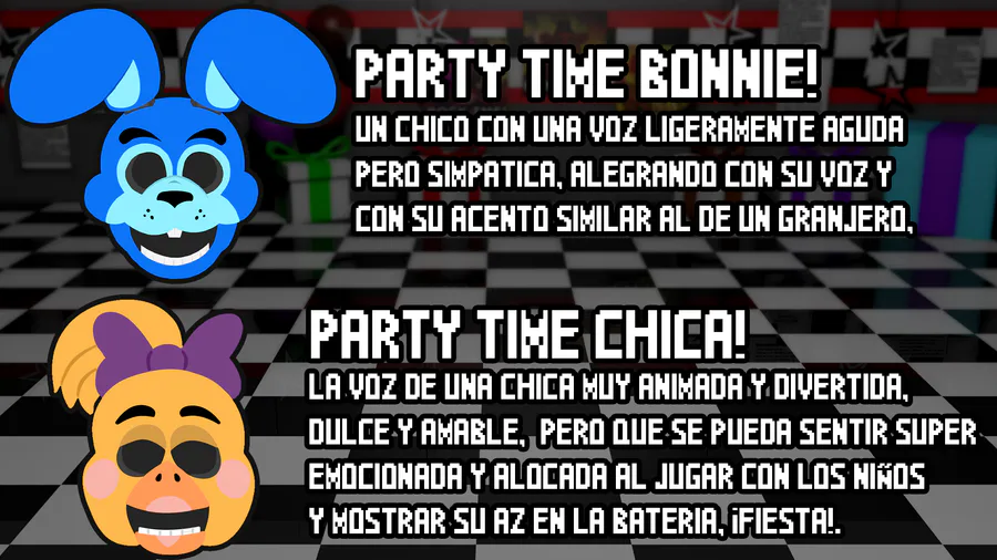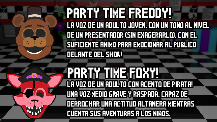 Pero... qué serían de animatrónicos de fiesta, ¡Sin unas voces que los representen!