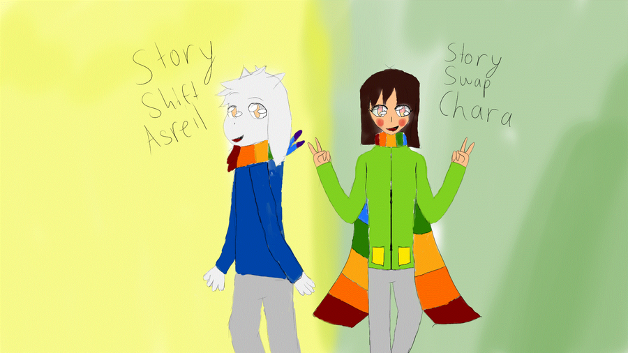 So I drew storyshift chara and classic sans reacting to sans a sans fangirl so....here I guess???