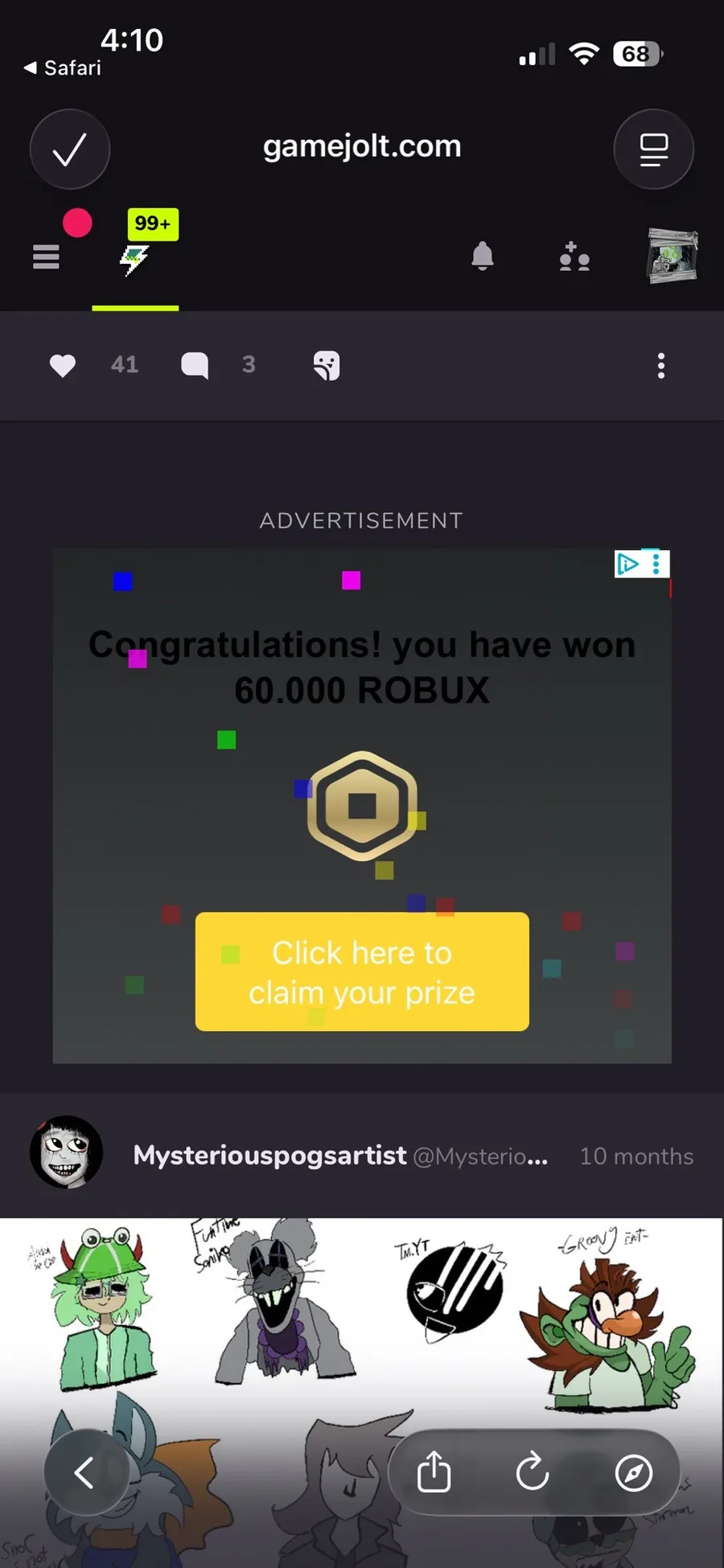 He is one of the funniest person I know in GAMEJOLT and posts extremely funny shitposts and videos, he deserves to have a friend