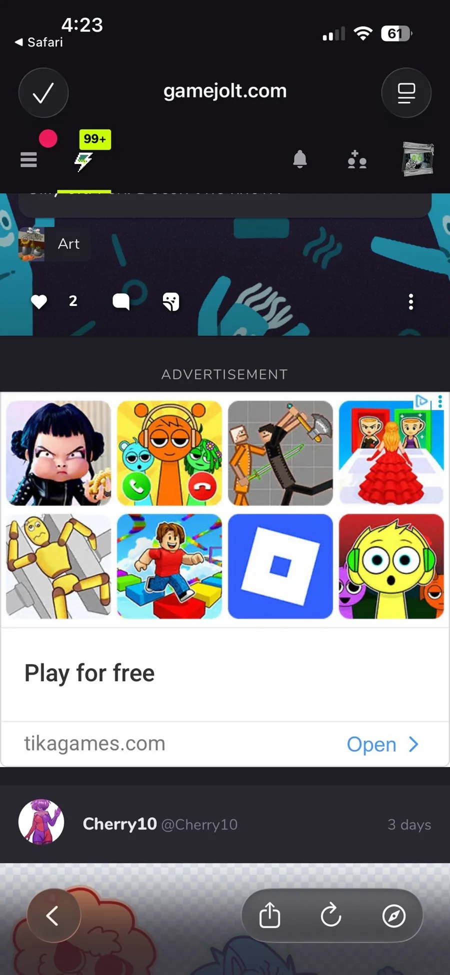 Cool person with silly and amazing artstyle, one of the best digital artists I have seen in gamejolt, definetly follow her!