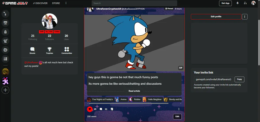 New Pinned post hi im ultraraven i am hello neighborfan fnaf fan bendy fan im a cool guy you should totally follow my awesome friends