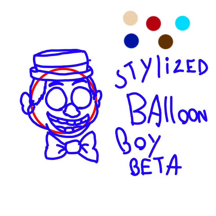 Just made this Beta concept of balloon boy and yes it was inspired by the return to freddys rebooted pluses ghoul balloon boy :) if you do wish to model or use this beta sketch you can just please credit me :)