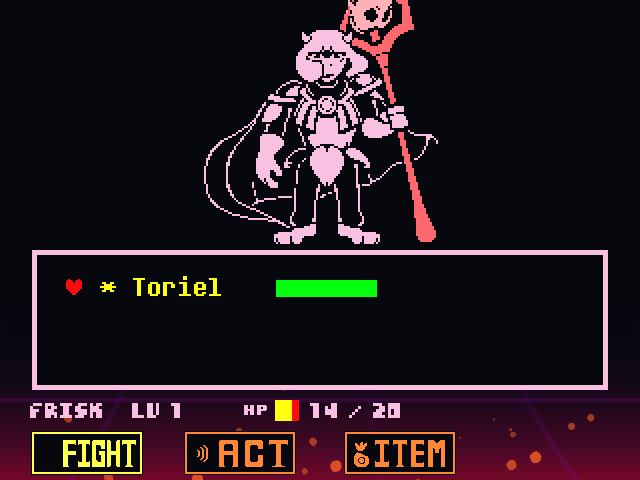 I've finally completed all the pre-fight stuff for Asriel... he is now in the game, on the battle screen, with the music!