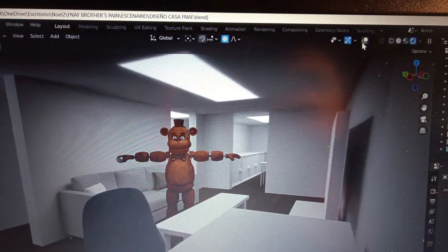 Consegui el modelo de Freddy Fazbear, tuve que darle un repaso a algunas texturas y algunas partes del modelo pero por lo general esta bien. Ya tiene el rig y todo puesto para poder ser animado.