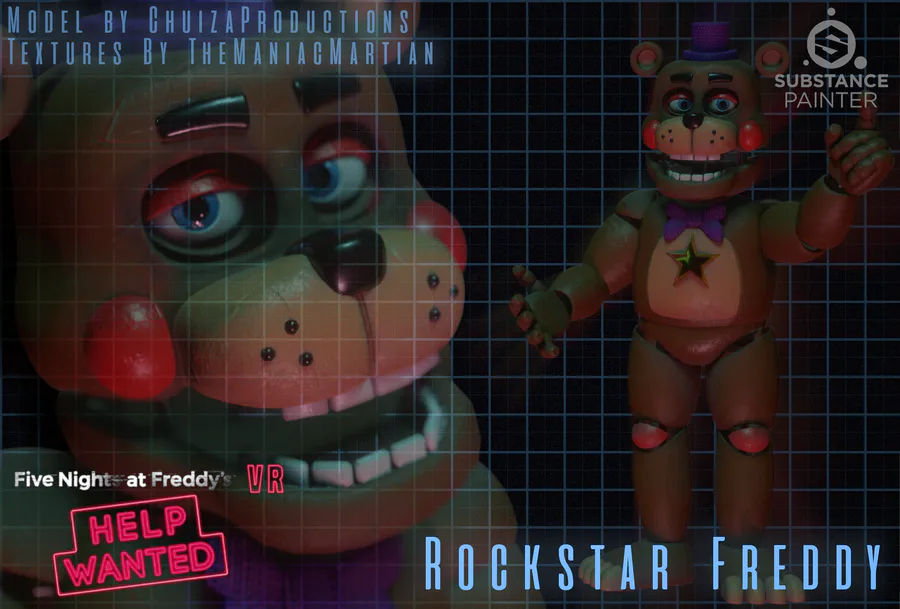 So like, what if Rockstar Freddy were to be in help wanted? This is how I think he would look, this was super fun to make, substance painter is great! Thanks to ChuizaProductions for the base model.