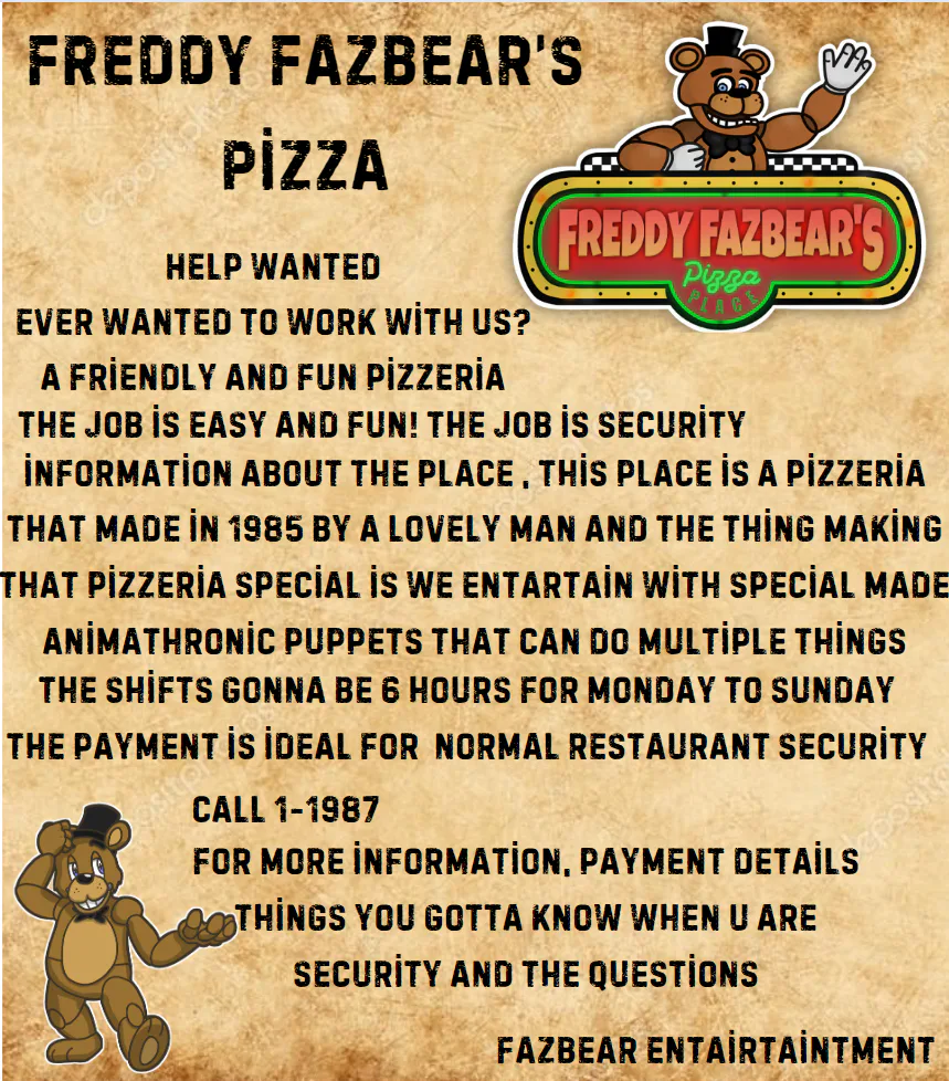 my fanmade Freddy Fazbear's Pizza pamphlet :D