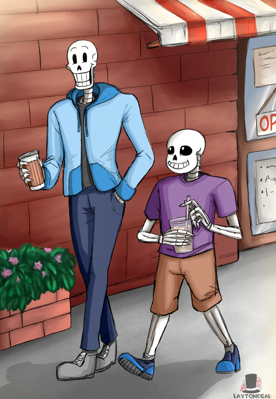 Just a lil' piece of Papyrus and Sans taking a stroll! This started out as a really simple sketch but then I realized it was gonna be way too boring without a background lol