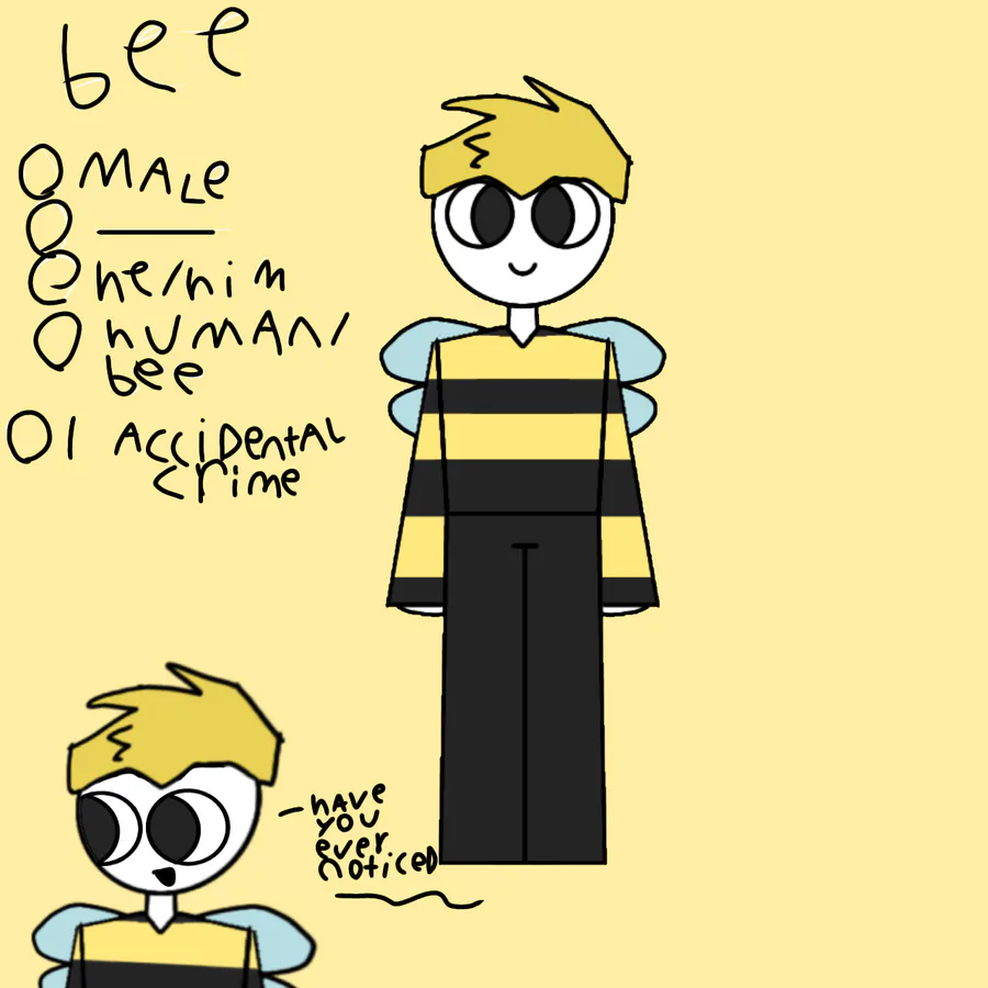 Also,feel free to draw me characters,there is no reason I won't let you unless it's interproprate,have a good day and bee the best person you could bee(sorry for the bee pun)