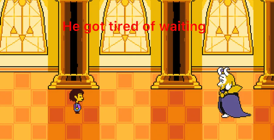Don’t blame him, I’d get tired to of waiting months on a throne surrounded by flowers for the last soul of ur collection (credits to UT create)