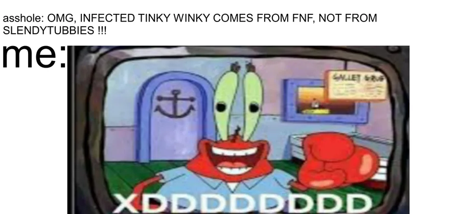 I like fnf and the mod but those idiots think the character came from the game but actually came from Slendytubbies, better understand idiots with a lack of culture (you will not believe me but it has a mod)