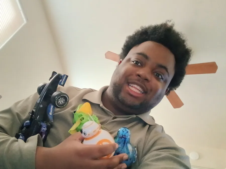 This is a a picture of me and my robot friends my name is Jason the 4 of my robots names are Jet, BB8 neon the bird , and a ray .