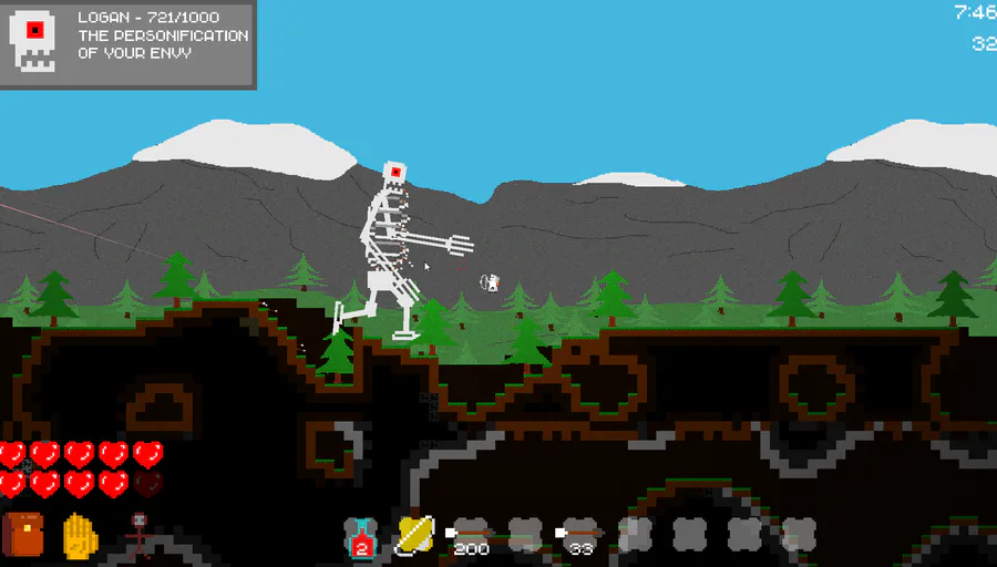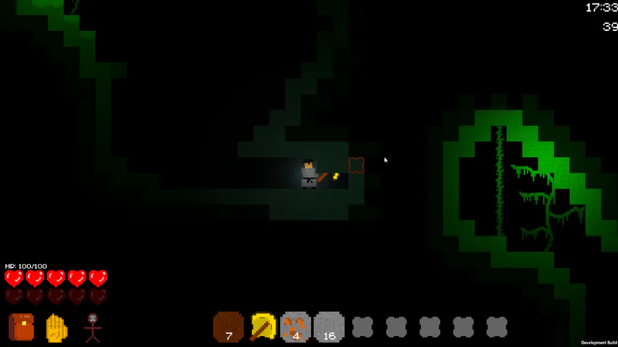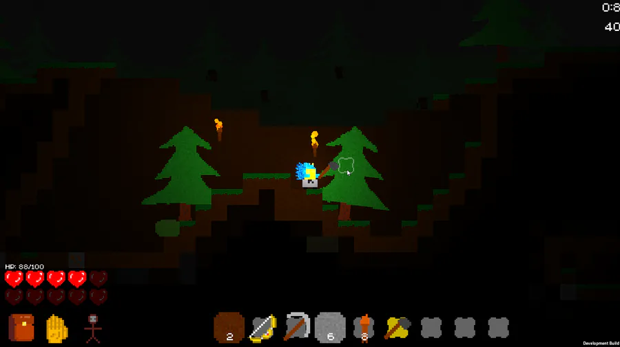 Hello! My Terraria-like game acquired the name - Vice Soul. During this month I changed and reworked a lot. Added several biomes and 1 boss, improved the generation of the world, added a lot of crafting, added effects, fluids and much more. The work is on