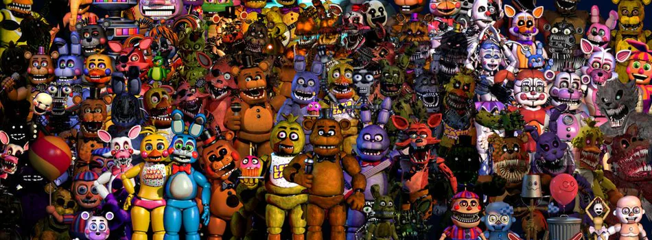 Freddy, Chica, Foxy, and Bonnie with their souls