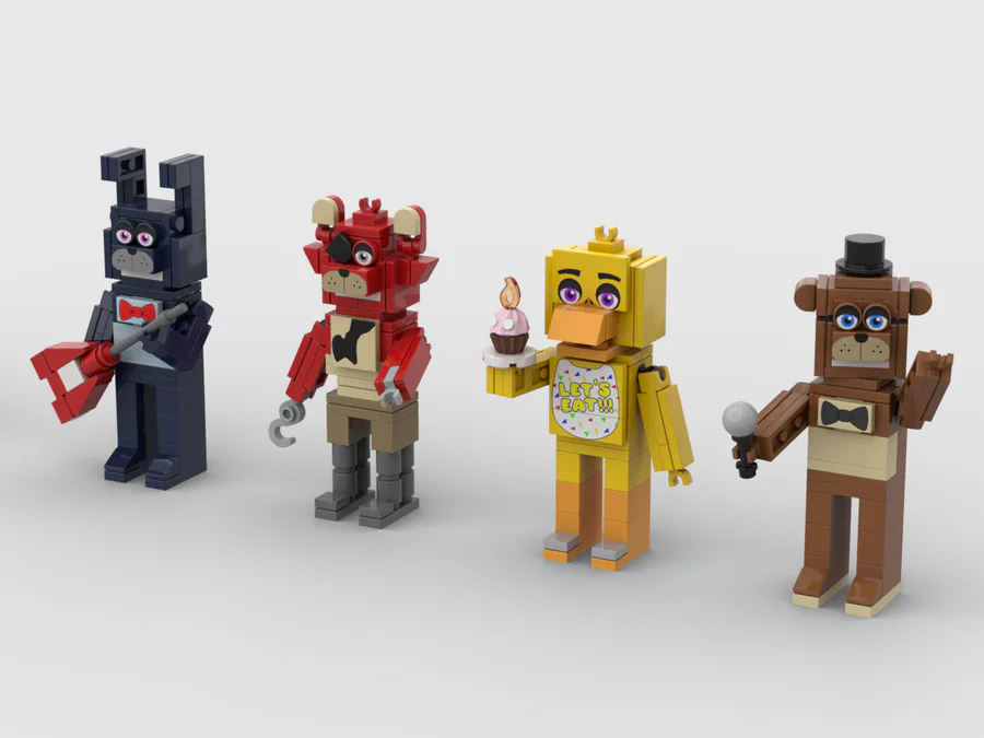 Here's the original 4 animatronics. Chica's cupcake is made up of 3 pieces. The main cupcake piece is a modified version of the cupcake top piece with a hole for the candle fire and some eyes.