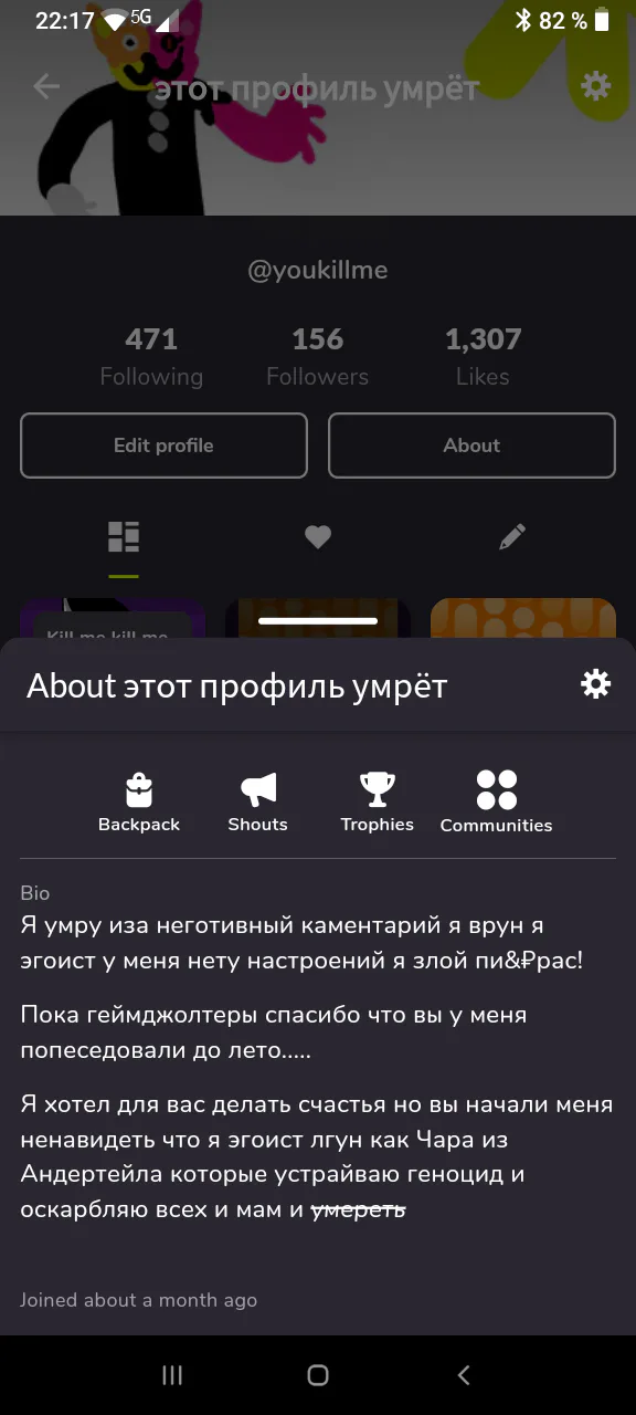 Вот вам мёртвое описания если вы меня ненавидете я мерзкий лгун!