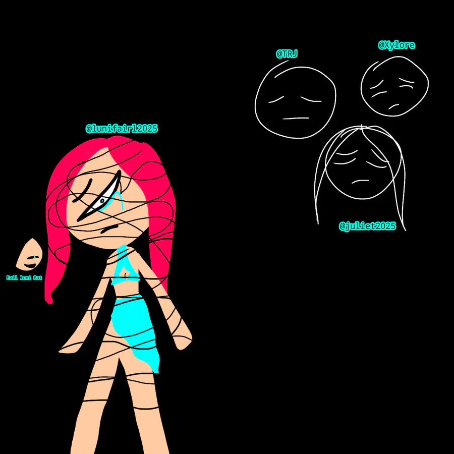 Luni was angry. Inside her, she was a normal Luni, locked up by the evil Luni Bat.
