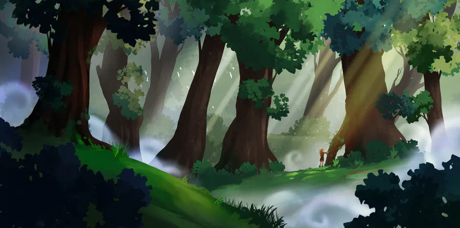A little painting practice: a mystic forest! I wanted some kind of deep forest vibe but with some magical and cheerful atmosphere. I hope you'll like it!