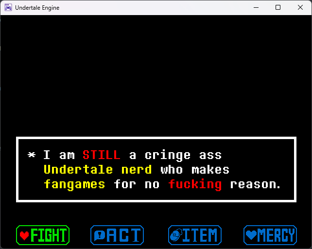 I seriously can't fucking help myself, I made *another* Undertale Engine that I know full damn well I'm not about to use for anything, someone rid me of this curse.