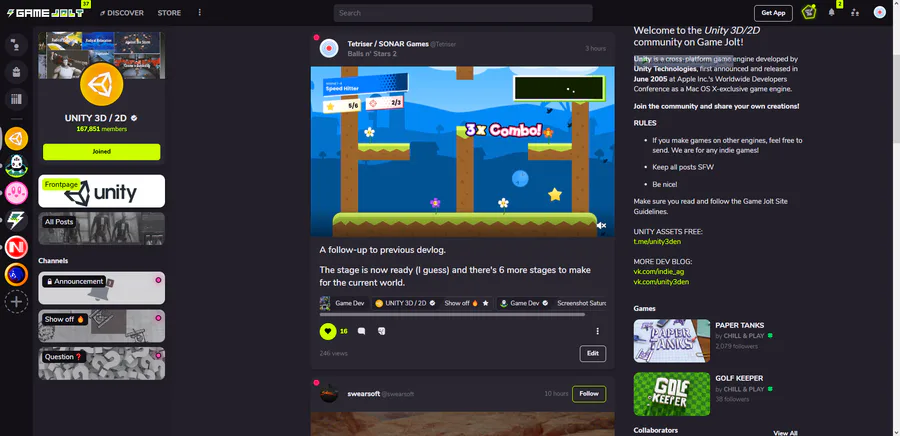 My stuffs got featured again, now on both the Unity and GJ's Game Dev communities!? That's radical, thank you!