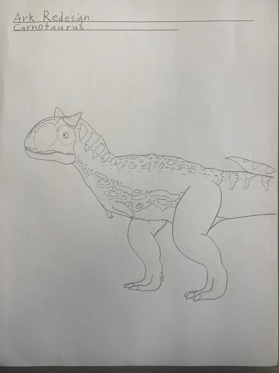 The next creature I redesigned from ark is the Carnotaurus. At some point I may color these, but it might take a day or 3 depending on the detail, anyways enjoy!