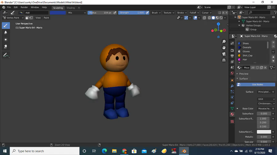 I'm finally getting somewhere with the Mario 64 model of me