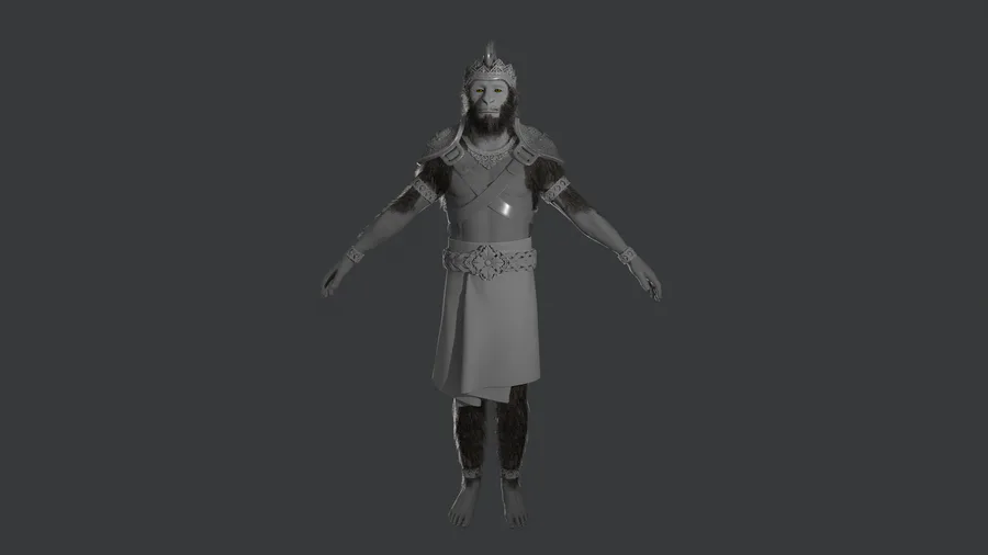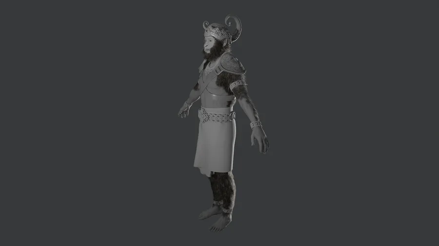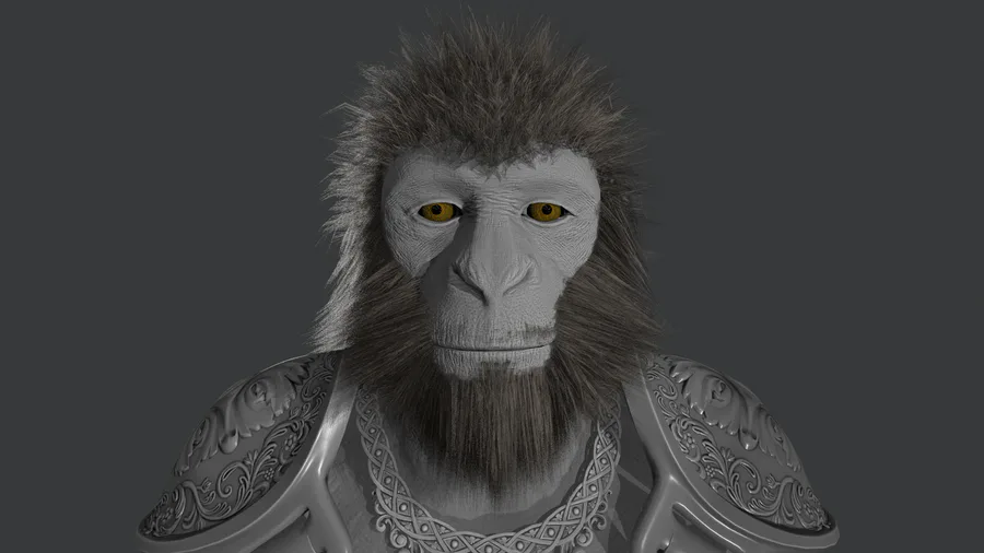 I fixed details in the hair and fur in the head and added the rest to the body. I feel there are some areas that need some work, especially some transitions from hairy to bald... Those are hard cards not hair particles.