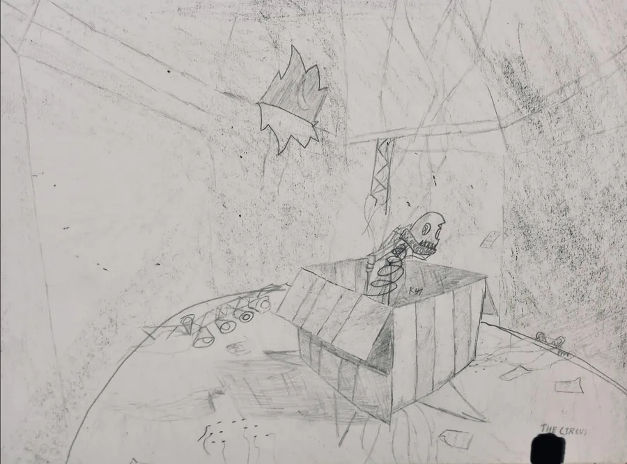 Some sketches I did based on Five Shifts at Fregie’s Circus. The censor on the 1st one is where I had written my initials.