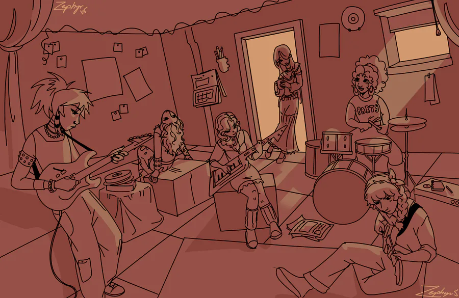 didn't feel like coloring but here's the gals! from left to right, RD, sunset, rarity, fluttershy, pinkie, and AJ!
